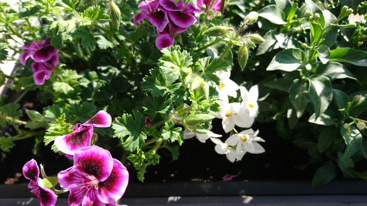 und nun mussten natürlich Blumen her! Also ab ins Gartencenter. Einen Gutschein hatte ich auch noch, da macht das Shoppen gleich doppelt Spaß. Es sollte etwas mediterranes sein, nicht zu viel buntes, in zarten Tönen wie rosa und weiß. Seht selbst :)
